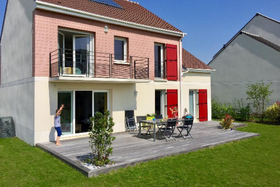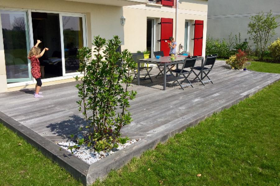 La terrasse bois, une vérritable pièce de vie pour les grands et les petits. (Saclay 91)