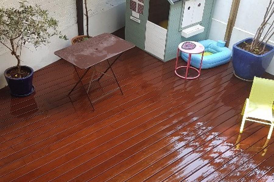 Ici, il s'agit d'une réalisation d'une terrasse bois en Kebony.
