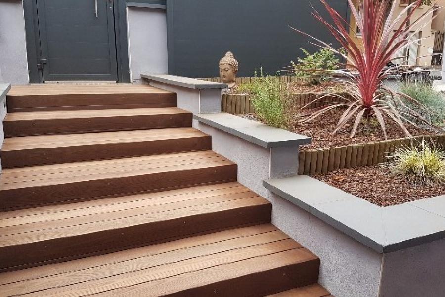 Réalisation d'un accès et d'une terrasse en thermofrêne
